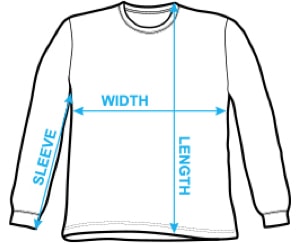 Our long-sleeve t-shirts are made from 50% cotton / 50% polyester blend and are available in five different sizes. All long-sleeve t-shirts are machine washable.